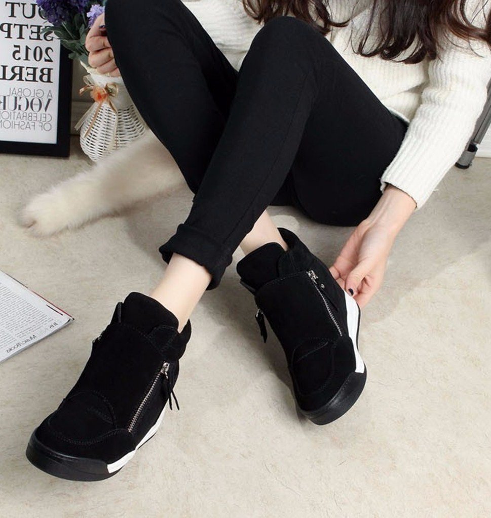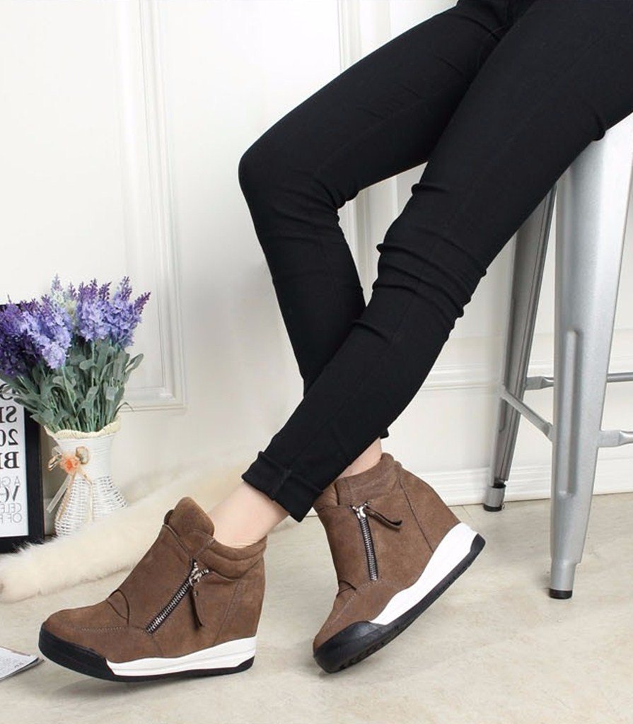 Yüksek kalite suni süet deriden üretilmiştir. Tabanı kauçuktur. Topuk yüksekliği 7.5 cm'dir. Kapama şekli fermuarlıdır. Sneaker gizli topukludur. Üzerinde fermuar detayları kullanılmıştır. Siyah ve Kahverengi rengi bulunmaktadır. 34-41 beden seçenekleri arasında sipariş verebilirsiniz.