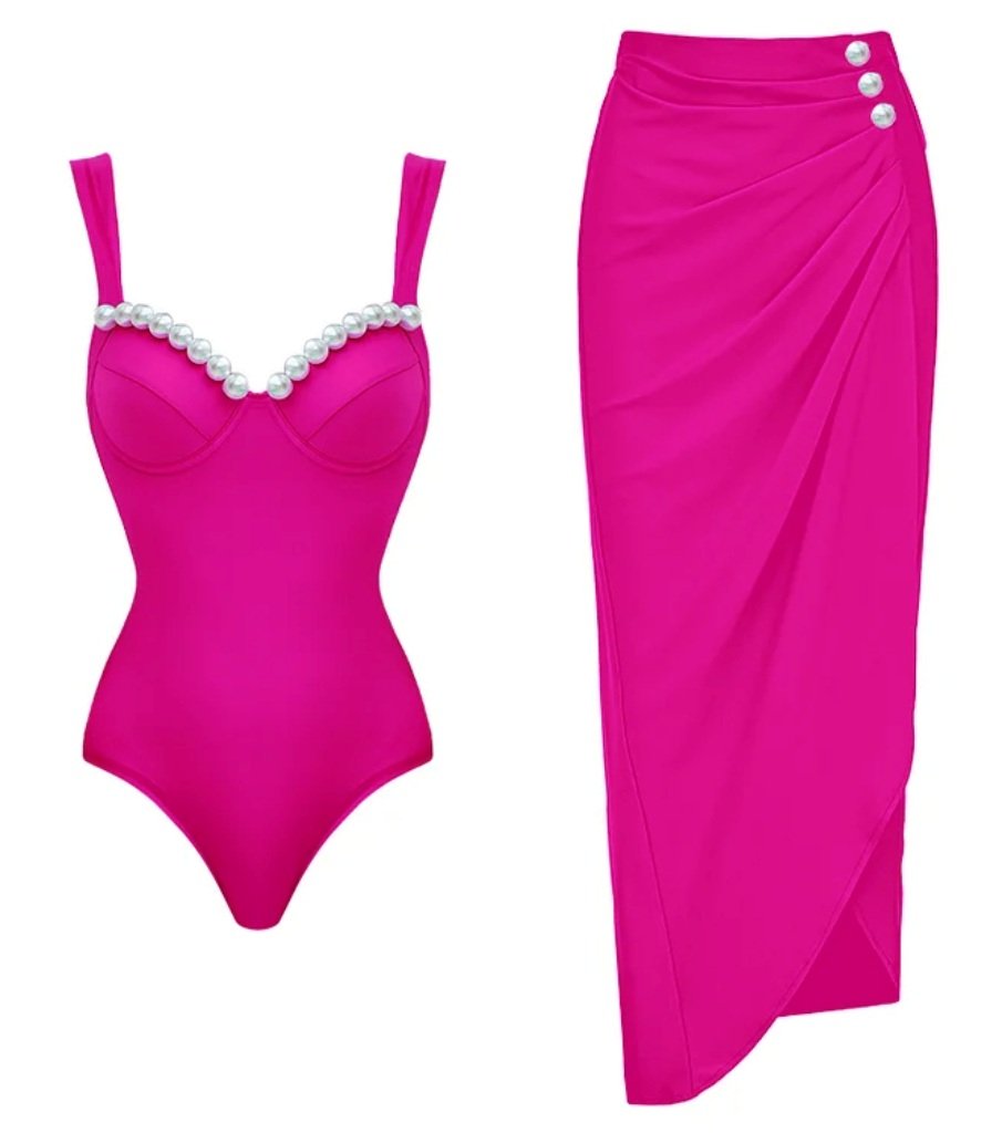 Pearl Detailed Two-Piece Skirted Swimsuit Set for Women – SK55217