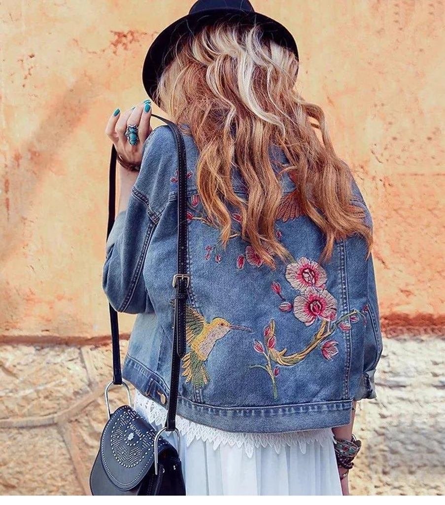 İşlemeli Mavi Kot Ceket SK16630