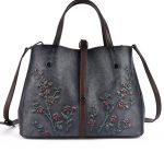 Kabartma Çiçek İşleme Gerçek Deri Çanta
