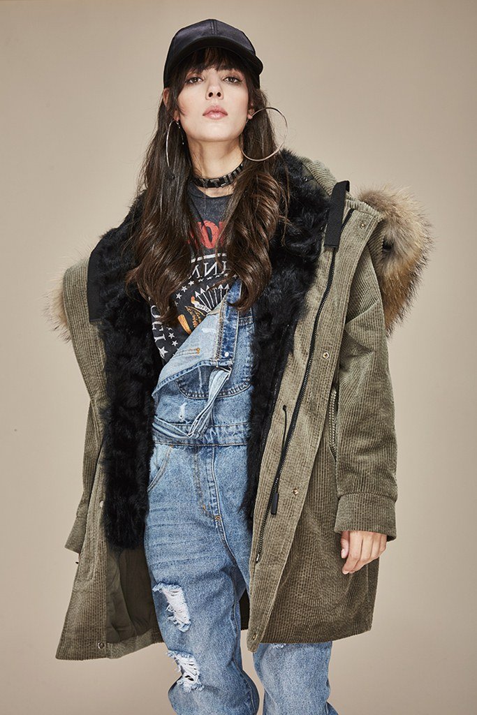 Kadife kumaştan üretilmiştir. Parkanın kapüşon kısmı gerçek rakun kürküdür. İç astarı gerçek kuzu kürkünden yapılmıştır. Kapama şekli çıt çıt ve fermuarlı olarak tasarlanmıştır. Yanlarda cepler mevcuttur. Haki ve Taba renk seçeneği mevcuttur. S,M ve L beden olarak sipariş verebilirsiniz.