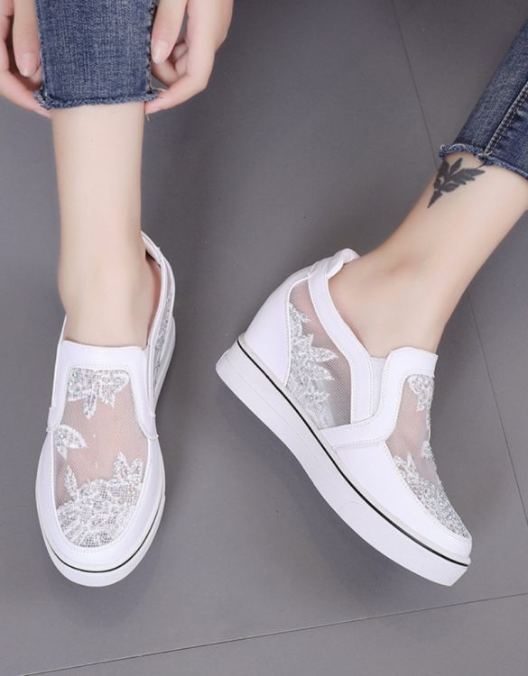 Beyaz Kanvas Gizli Topuk Kadın Sneaker SK53339