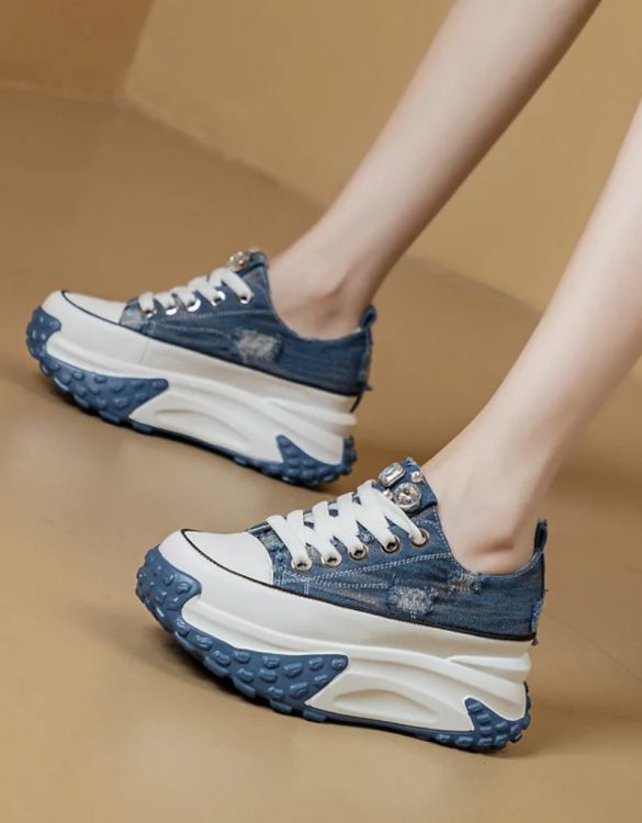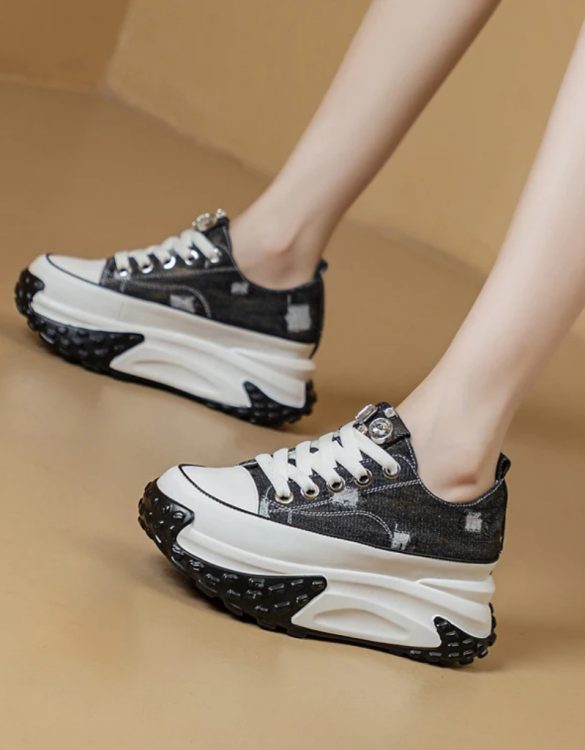 Kanvastan üretilmiştir. Tabanı kauçuktur. Ayakkabı gizli topuk platform tabanlıdır. Topuk yüksekliği 7 cm'dir. Ayakkabı eskitme kumaş detaylı tasarlanmıştır. Siyah ve Beyaz rengi mevcuttur. 35-39 beden seçenekleri arasında sipariş verebilirsiniz.