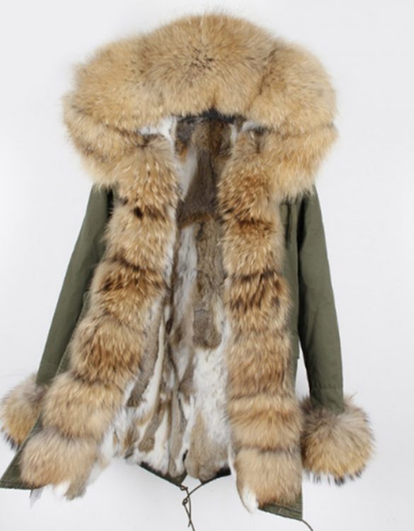 Parka pamuk ve polyester kumaştan üretilmiştir. Parkanın kapüşon kısmı gerçek rakun kürkünden yapılmıştır. İçi kaz tüyü ile doldurmadır. Kapama şekli fermuar ve çıt çıt olarak tasarlanmıştır. Haki ve Pembe renk seçeneği mevcuttur. S,M ve L beden olarak sipariş verebilirsiniz.