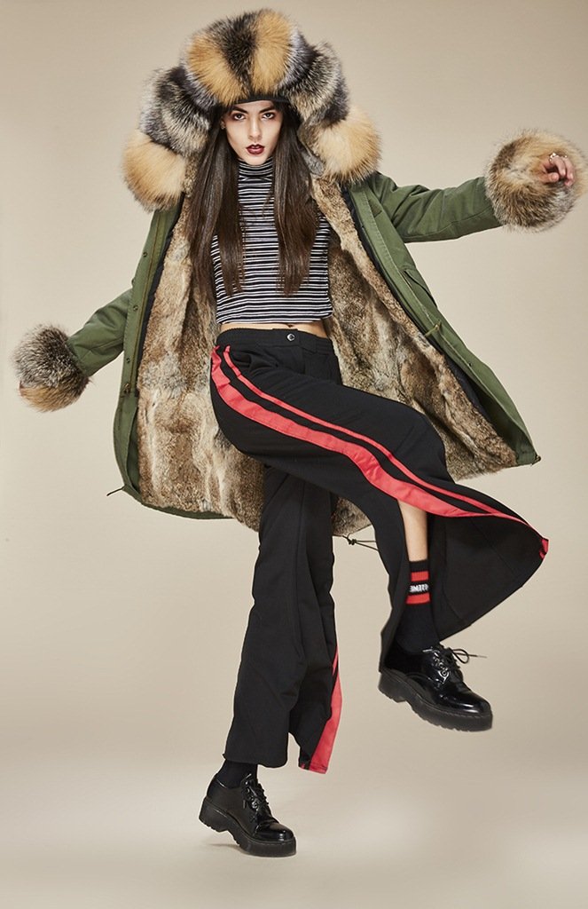 %100 pamuk kumaştan üretilmiştir. Parkanın kapüşon ve kol uç kısımları gerçek tilki kürkünden yapılmıştır. İç astarı tavşan kürklüdür. Kapama şekli fermuar ve çıt çıt olarak tasarlanmıştır. Haki renk seçeneği mevcuttur.