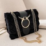 Kürk ve Zincir Detaylı Omuz Çantası SK49773
