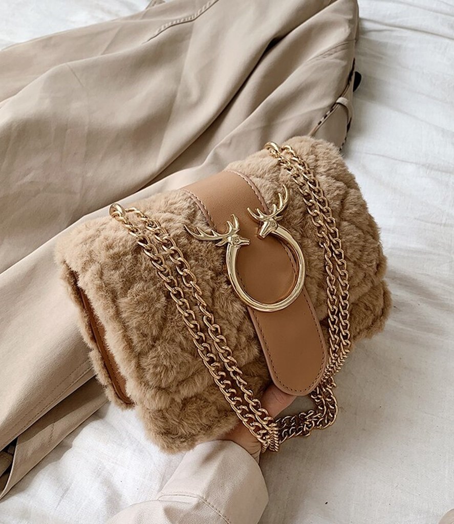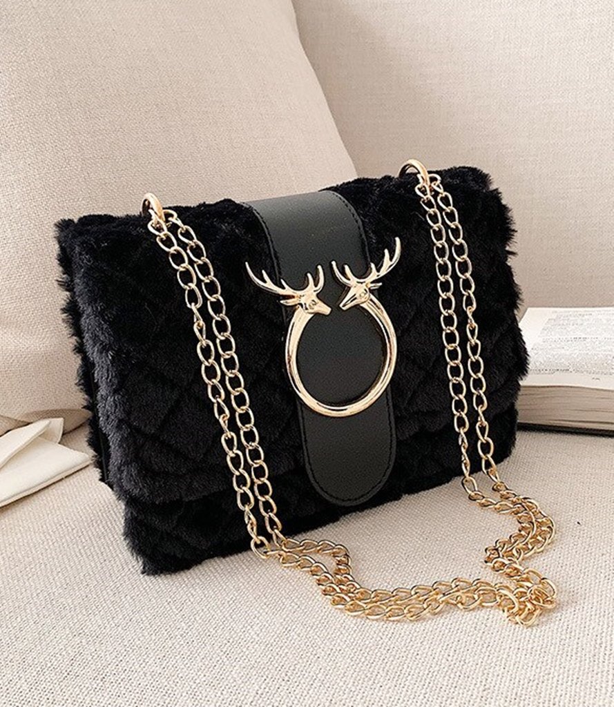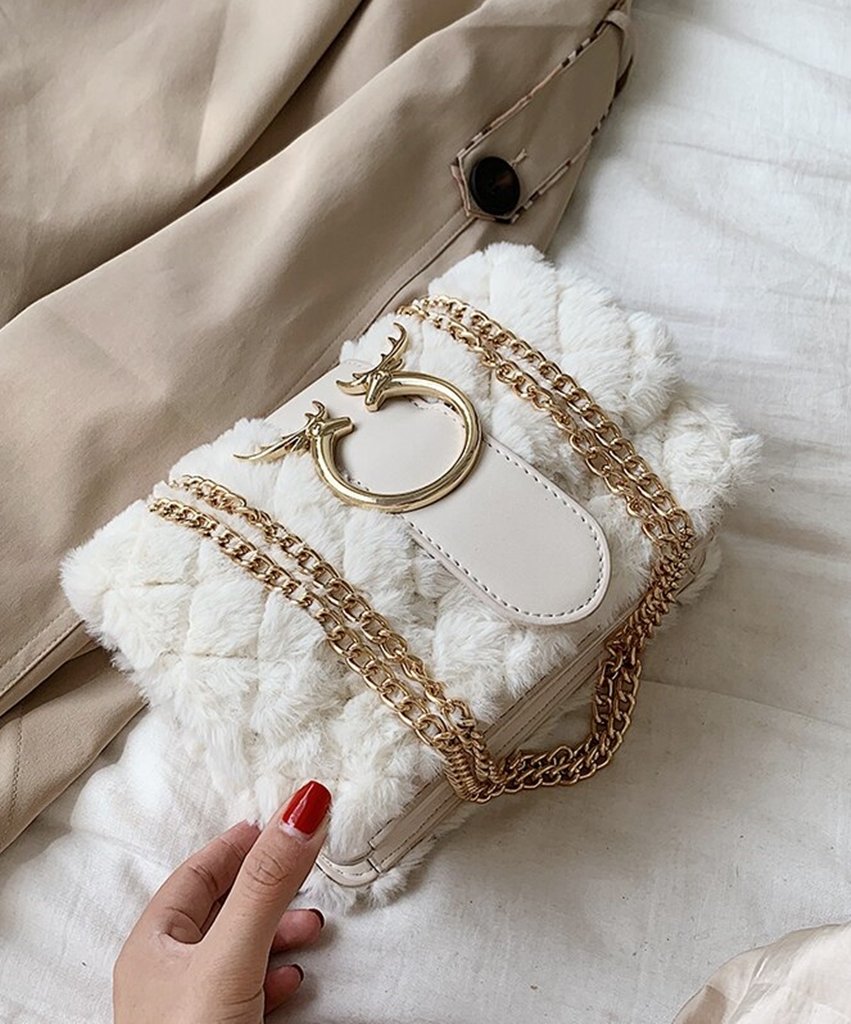 Kürk ve Zincir Detaylı Omuz Çantası SK49773