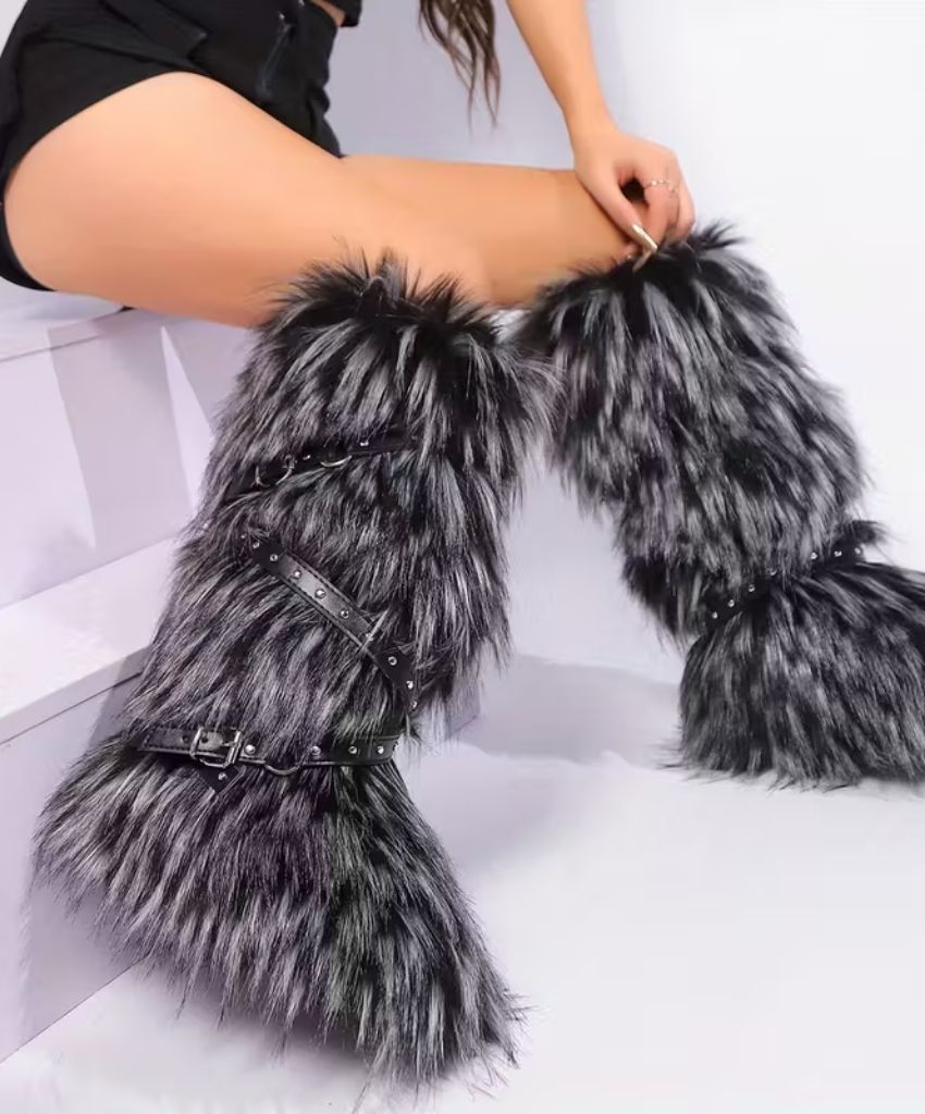Kürklü Uzun Çizme, yumuşak kürk astarı ve uzun formuyla hem şıklığı hem de konforu bir araya getiriyor.