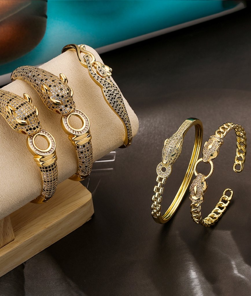 The leopard-inspired design introduces a bold fashion element, enhanced by high-quality zircon stones that reflect light with refined brilliance. Unlike minimalist gold bracelets, this model stands out with its distinctive animal pattern aesthetic while maintaining elegant balance.