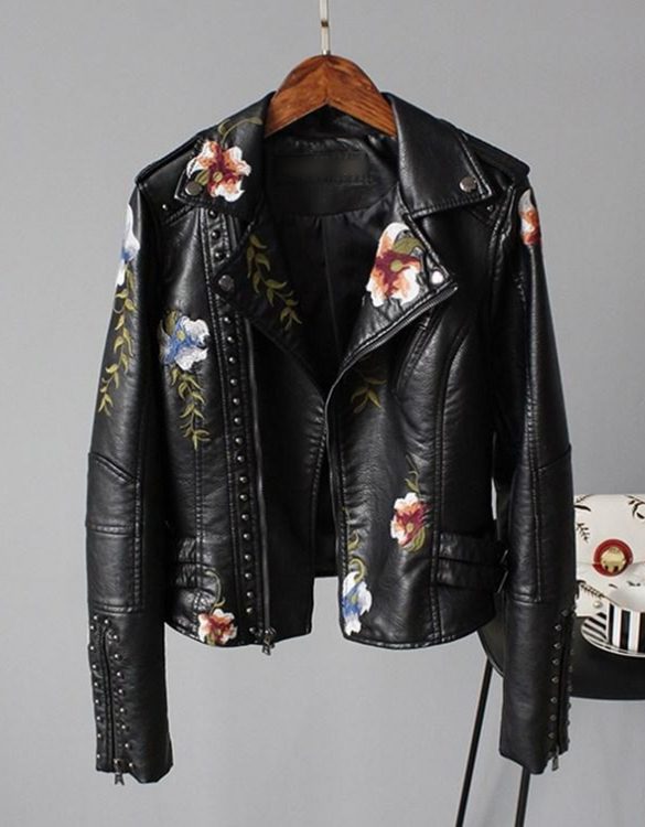 Nakış ve Zımba Detaylı Deri Ceket SK25807