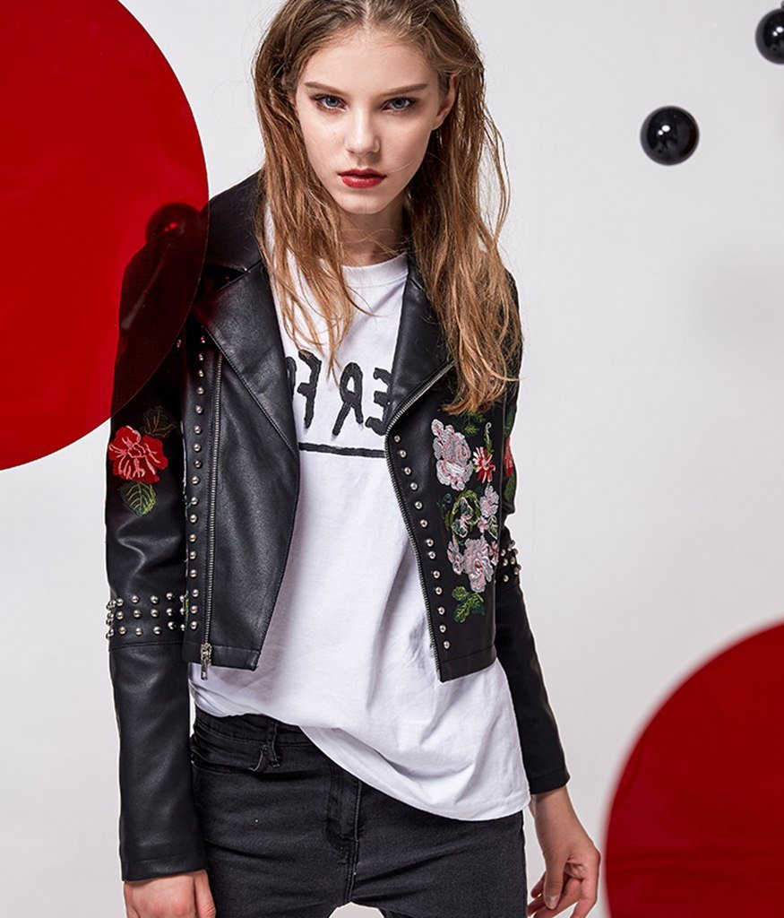 Nakış ve Zımba Detaylı Deri Ceket SK25807