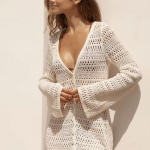 Pamuk Polyester karışımı örme ipten üretilmiş, yaz aylarında bikini ve mayolarınızın üzerine rahatlıkla giyebileceğiniz, önden düğmeli mini örgü plaj elbisesi. Bej rengi mevcuttur. S-M-L beden olarak sipariş verebilirsiniz.