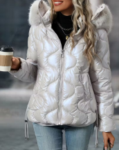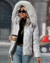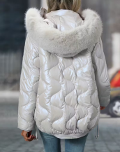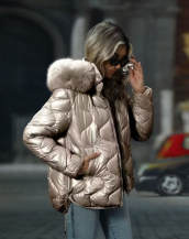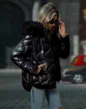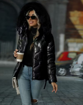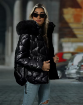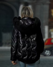Parlak Kürk Kapüşonlu Şişme Mont SK57205