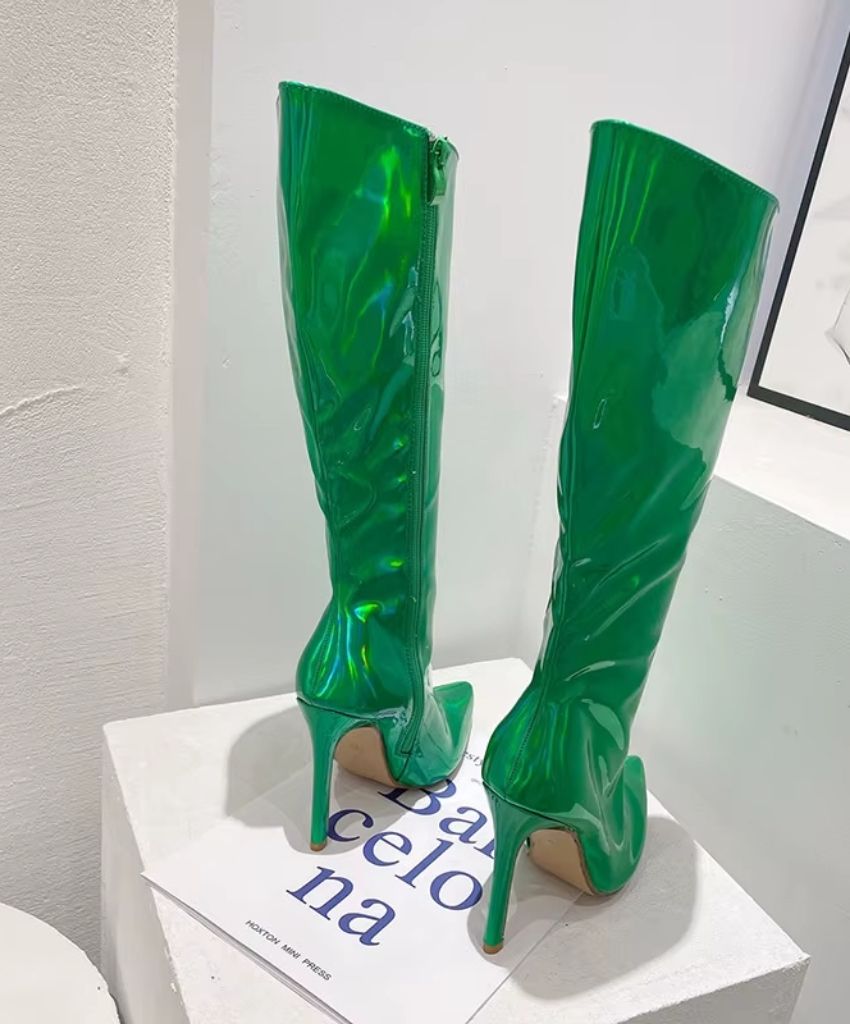 Parlak yüzeyi ve enerjik neon tonlarıyla dikkat çeken Parlak Neon Renkli Topuklu Çizme, iddialı kombinlerin vazgeçilmez parçası. Rahat iç astarı ve modern tasarımıyla hem şık hem konforlu.