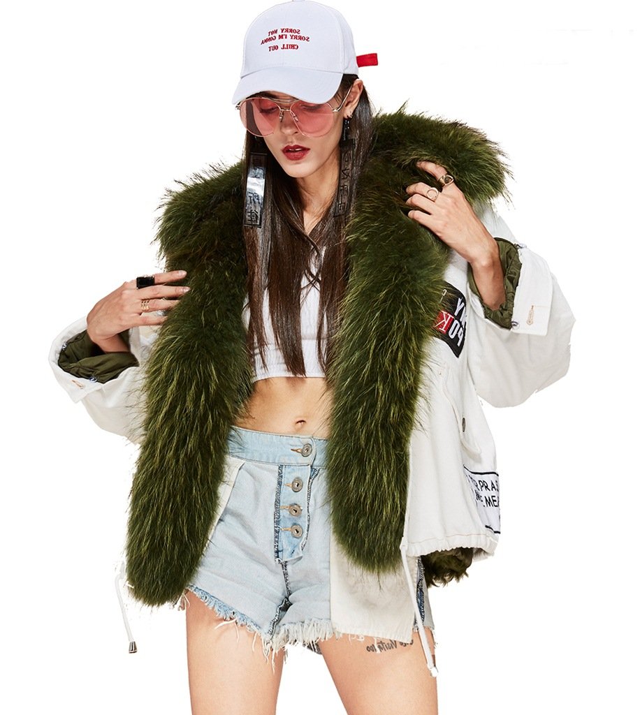 Parka %100 pamuk kumaştan üretilmiştir. Parkanın yaka kısmı gerçek rakun kürkünden yapılmıştır. İç astarı gerçek koyun kürklüdür. Parkanın sırt ve ön kısmında payet detaylar kullanılmıştır. Kapama şekli fermuarlı olarak tasarlanmıştır. Yanlarda cepler mevcuttur. Beyaz renk seçeneği mevcuttur. S,M ve L beden olarak sipariş verebilirsiniz.