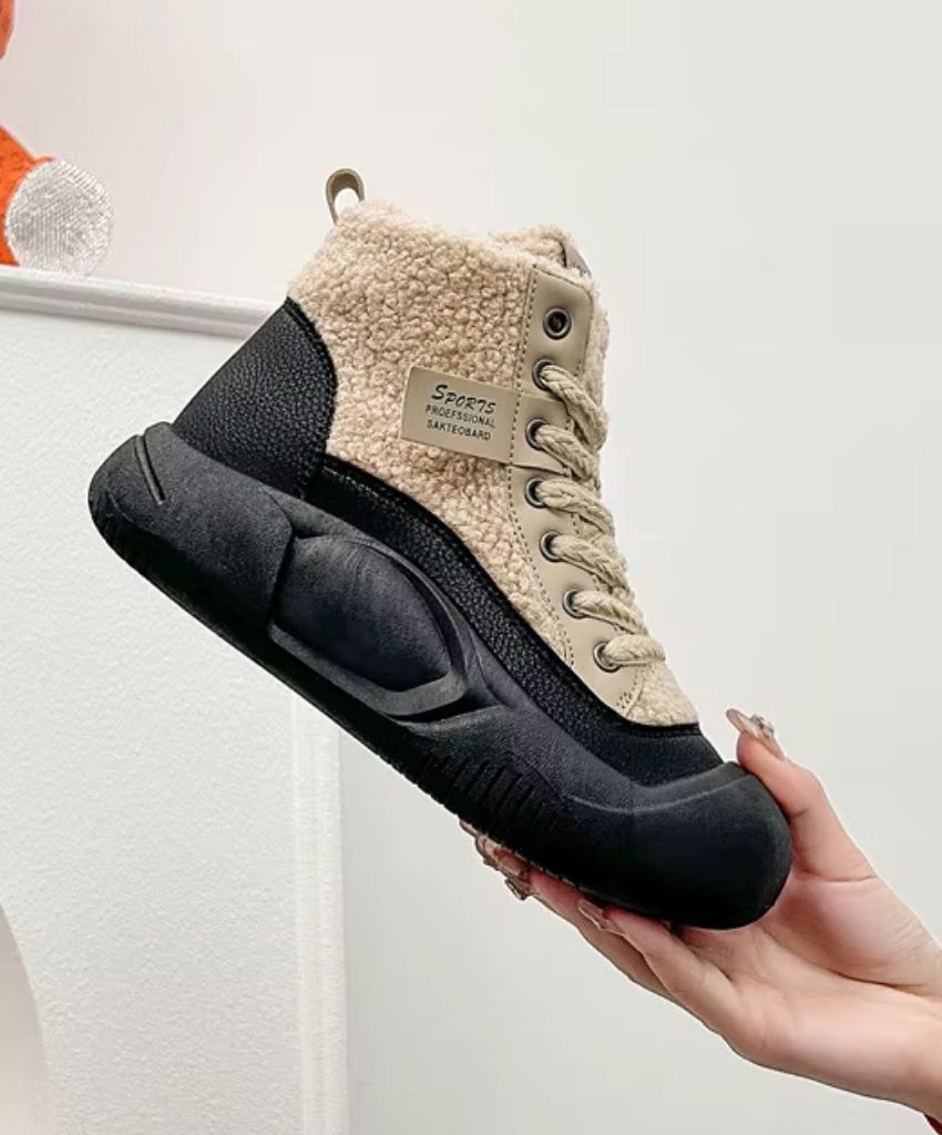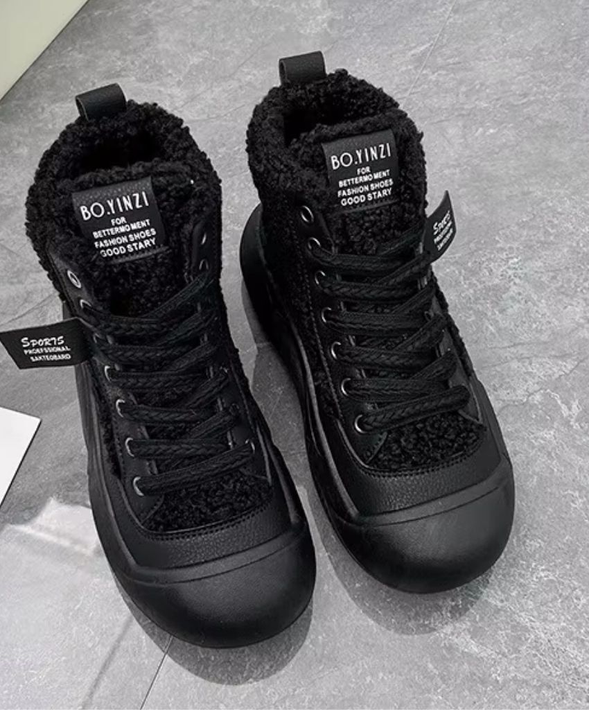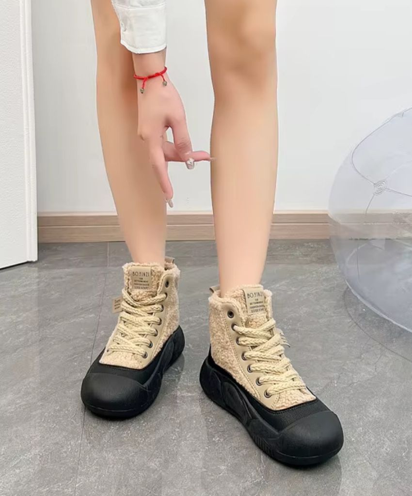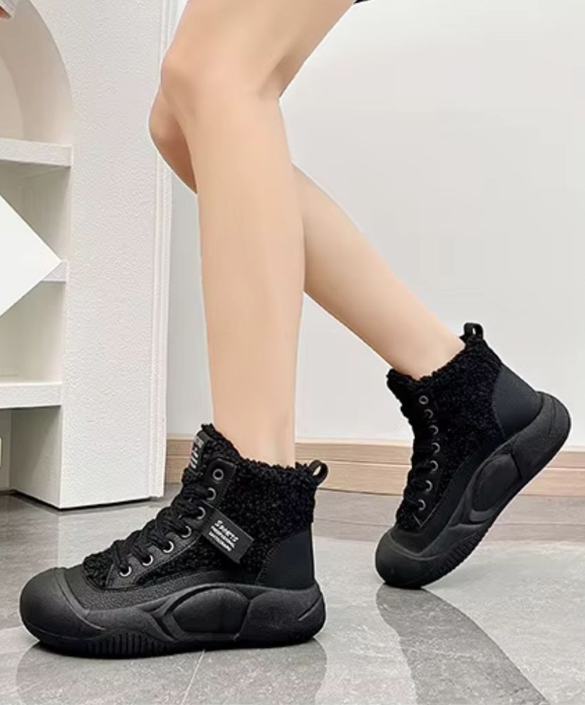 Yumuşak peluş dokusu, hafif yapısı ve modern tasarımıyla Peluş Bağcıklı Kısa Spor Bot, soğuk günlerde hem konfor hem tarz sunar.