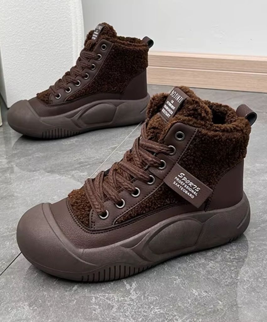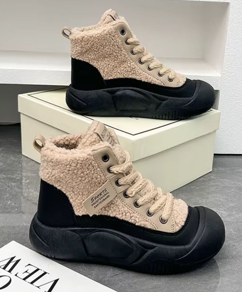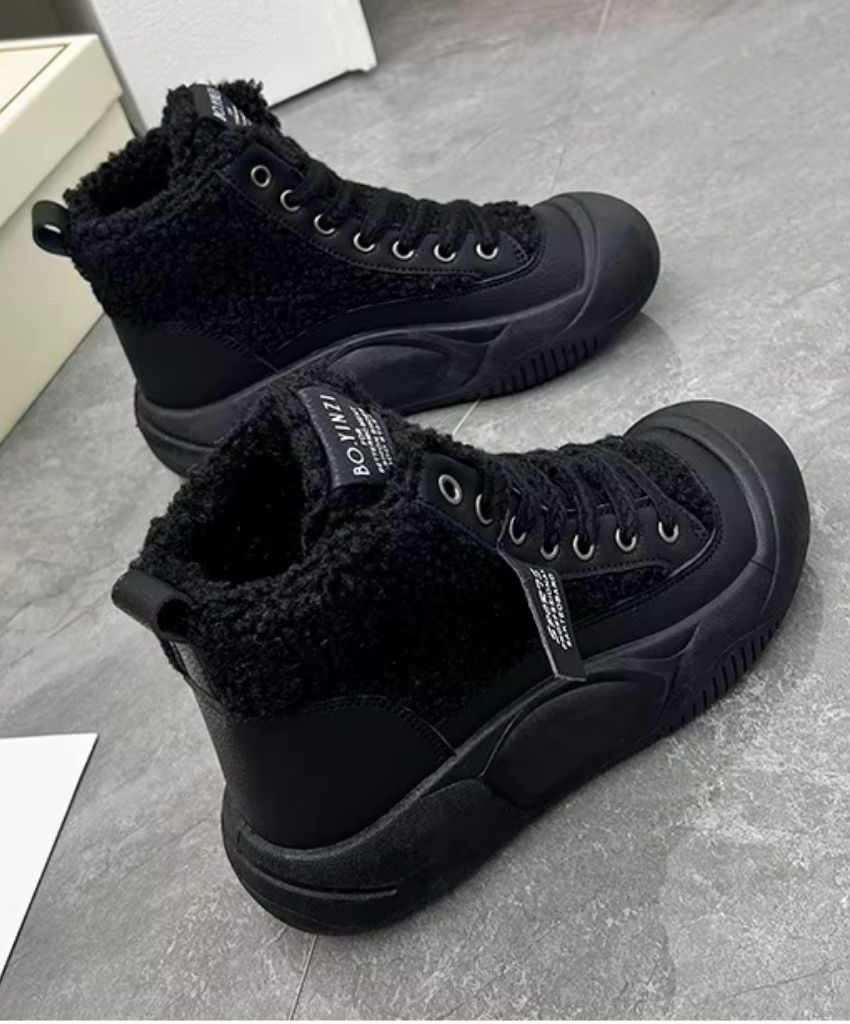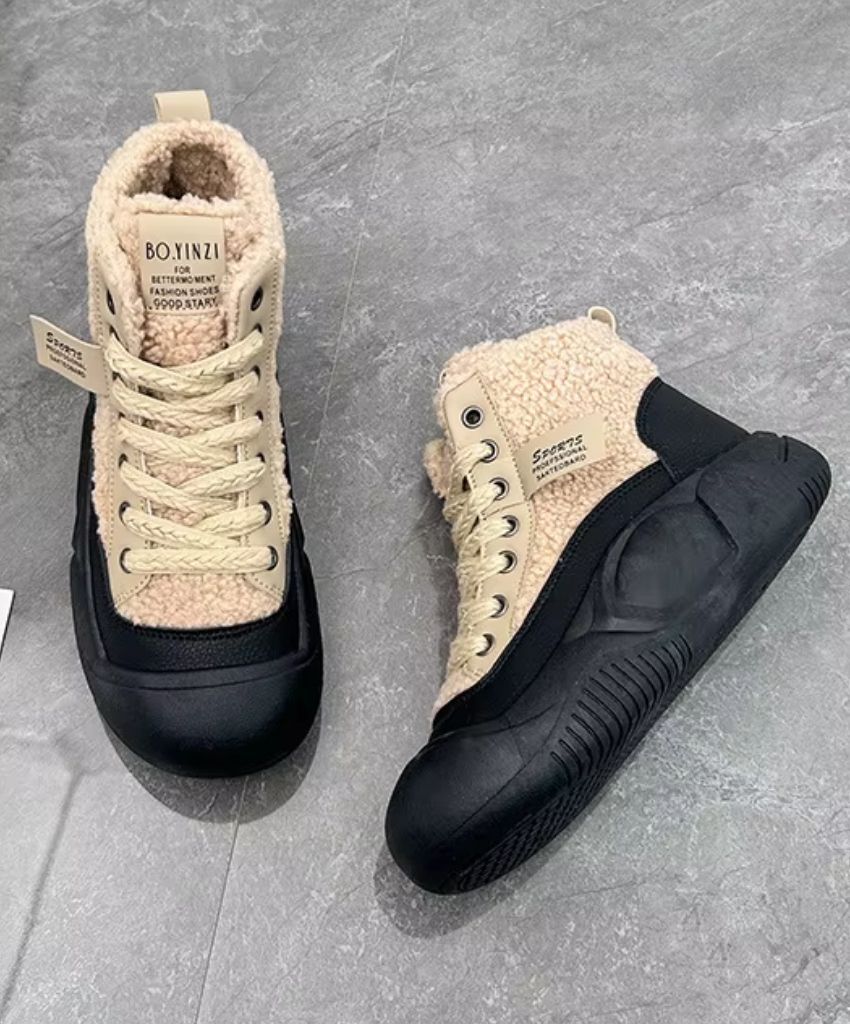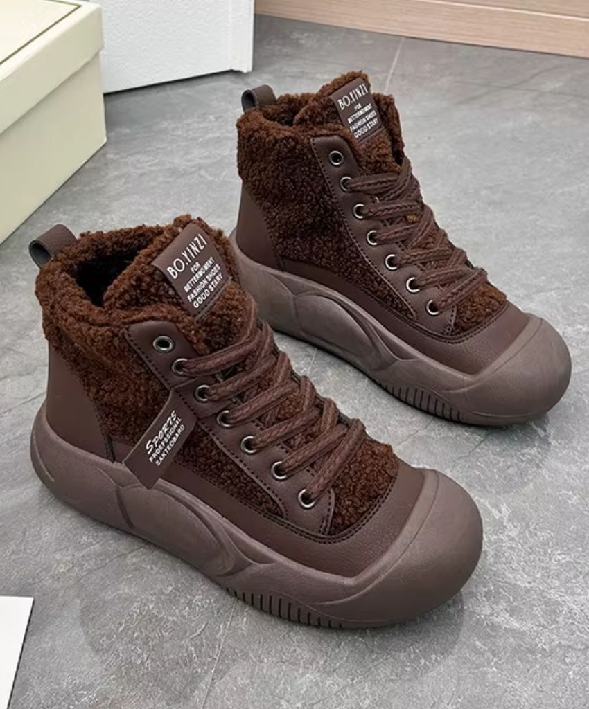 Yumuşak peluş dokusu, hafif yapısı ve modern tasarımıyla Peluş Bağcıklı Kısa Spor Bot, soğuk günlerde hem konfor hem tarz sunar.