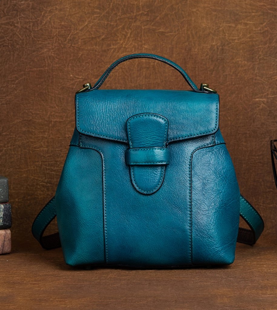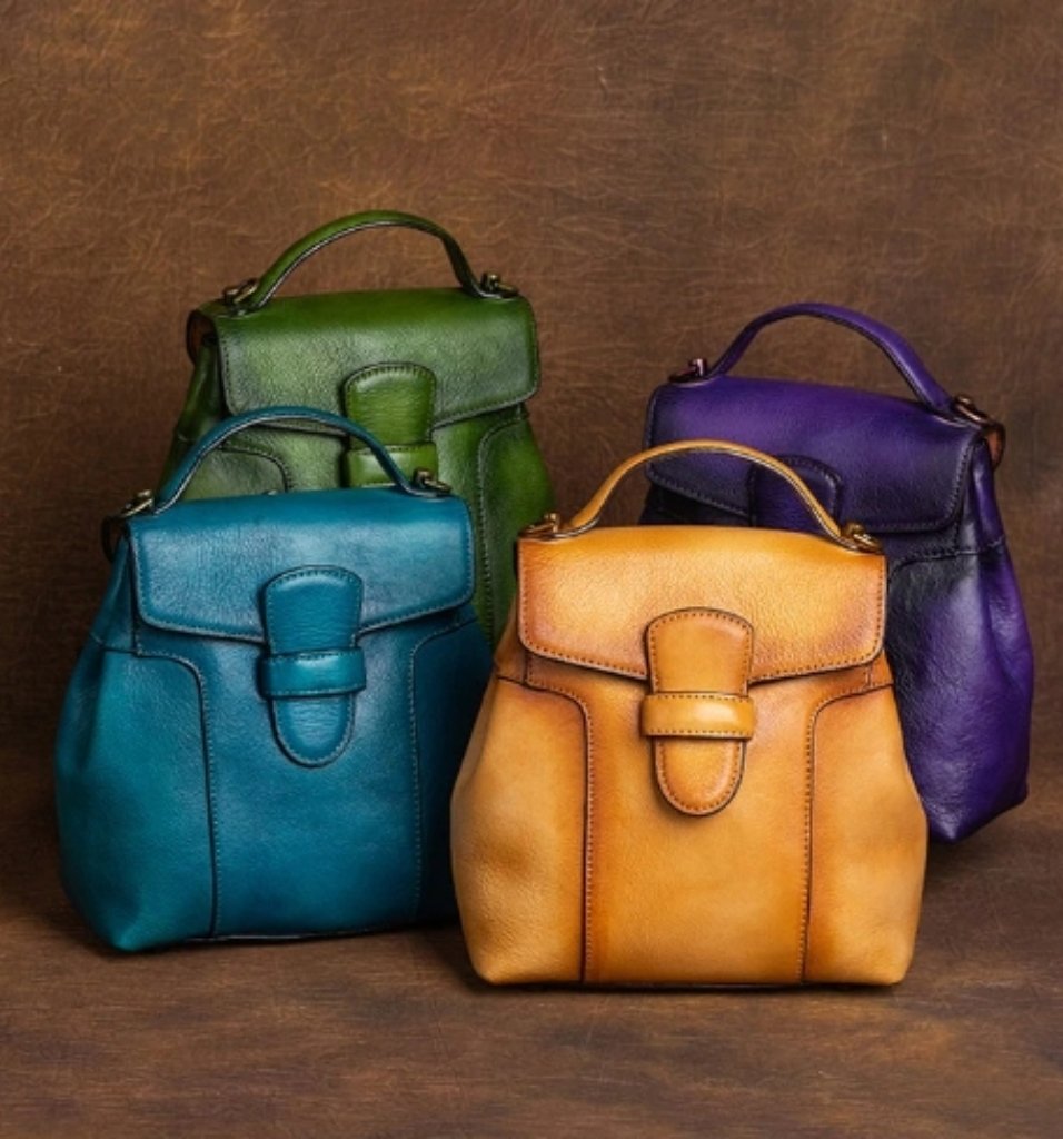 Available in blue, yellow, green, and purple, this genuine leather women’s backpack adds a subtle statement to modern, casual, and elevated everyday looks.