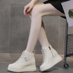 Yüksek kalite gerçek deriden üretilmiştir. Taban malzemesi kauçuktur. Kalın yüksek tabanlıdır. Topuk yüksekliği 8 cm'dir. Spor ayakkabı gizli topuk detaylıdır. Ayakkabının kapama şekli Bağcıklı olarak tasarlanmıştır. Siyah rengi bulunmaktadır. 34-40 numara seçenekleri arasında sipariş verebilirsiniz.