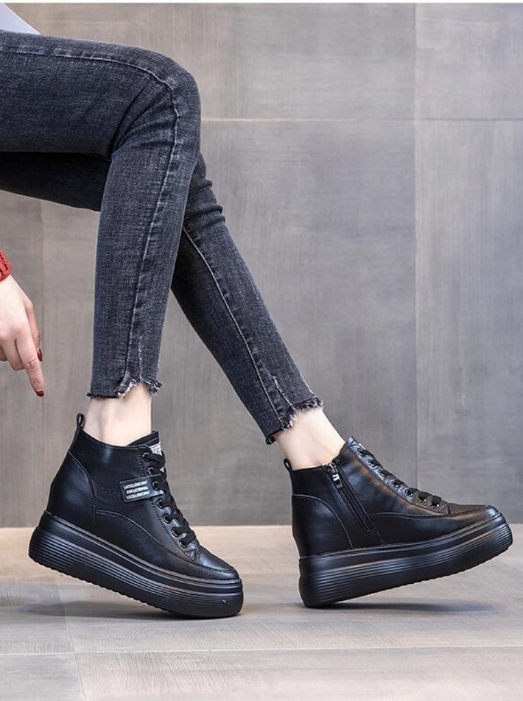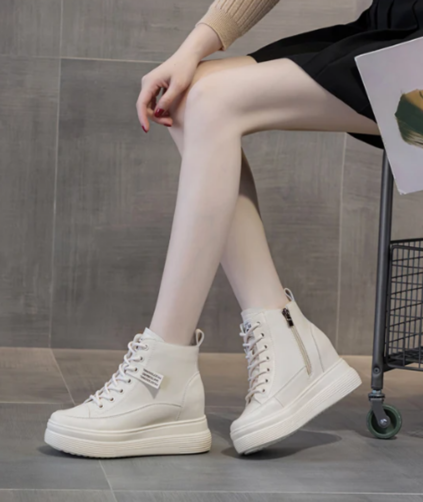 The SK52204 genuine leather hidden wedge sneakers combine discreet height, premium craftsmanship, and everyday versatility for women seeking refined elevation.