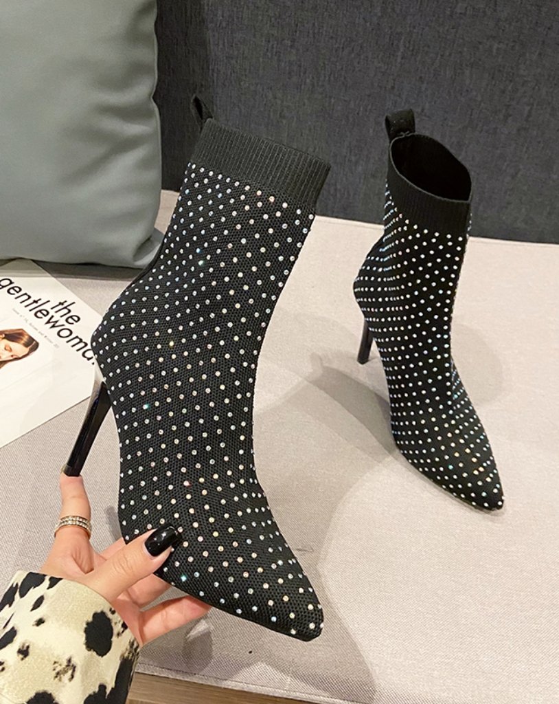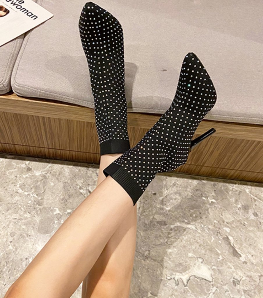 Crystal Embellished Sock Heel Women’s Boots SK54273