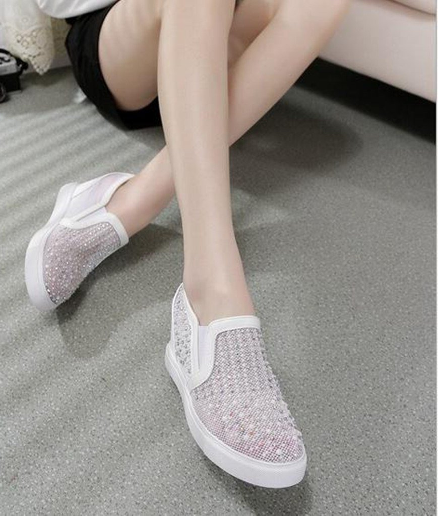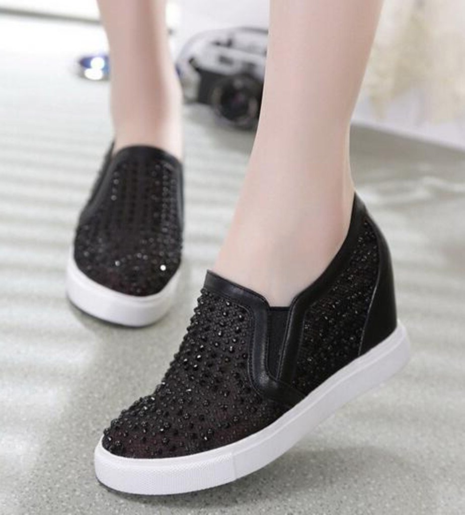 Mesh kumaştan üretilmiştir. Tabanı kauçuktur. Ayakkabı gizli topukludur. Topuk yüksekliği 5 cm'dir. Ayakkabının üzerinde taş detaylar kullanılmıştır. Siyah ve Beyaz rengi mevcuttur. 35-41 beden seçenekleri arasında sipariş verebilirsiniz.