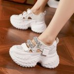 Gümrüklü deriden üretilmiştir. Tabanı kauçuktur. Sandalet rahat platform topukludur. Topuk yüksekliği 8 cm’dir. Spor platform kalın taban sandalet cırtlı ve parlak taş detaylı olarak tasarlanmıştır. Gümüş ve Beyaz rengi mevcuttur. 34-39 beden seçenekleri arasında sipariş verebilirsiniz.