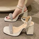 Beyaz Taşlı Tek Bant Kare Topuk Sandalet SK52992