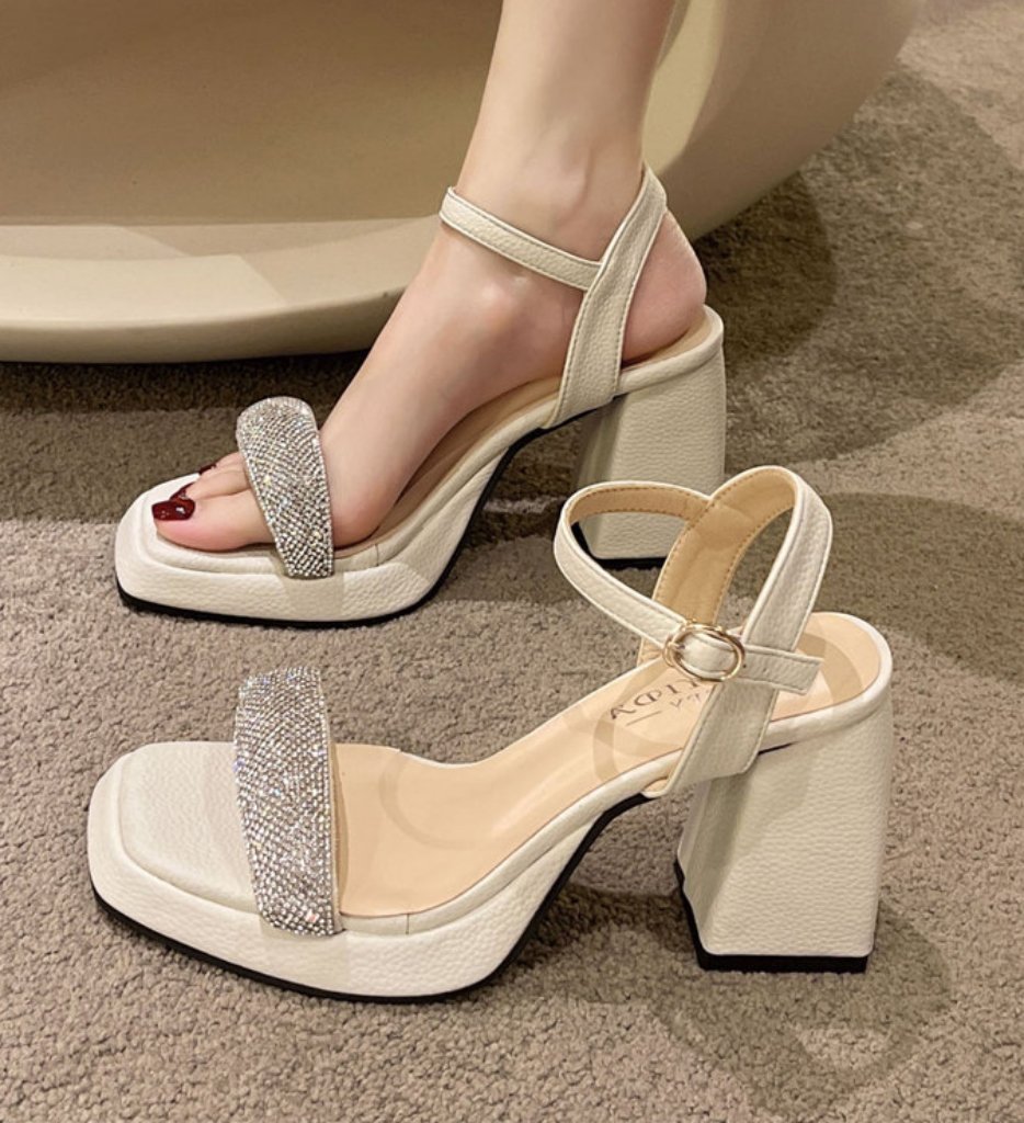 The SK52992 crystal block heel sandals combine structured support, subtle sparkle, and modern simplicity for women who value elegance with stability.