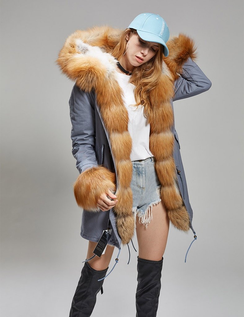 Parka pamuk kumaştan üretilmiştir. Parkanın kapüşon ve kol uç kısımları gerçek rakun kürküdür. İç astarı gerçek çinçilla kürkünden yapılmıştır. Kapama şekli çıt çıt ve fermuarlı olarak tasarlanmıştır. Yanlarda cepler mevcuttur. Siyah, Mavi, Kamuflaj, Haki ve Pembe renk seçeneği mevcuttur. S,M,L,XL ve XXL beden olarak sipariş verebilirsiniz.