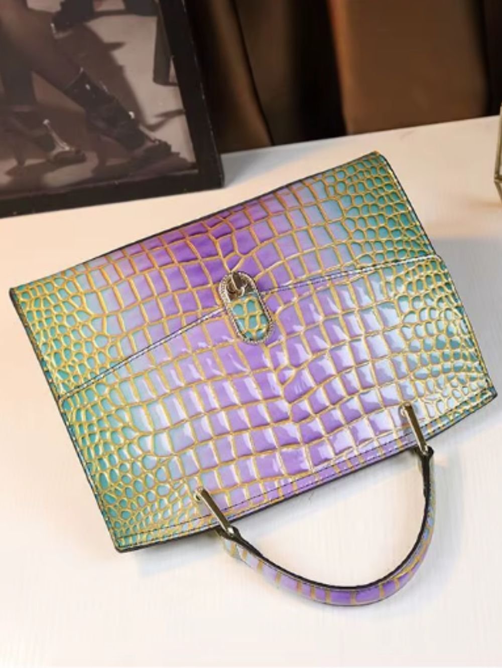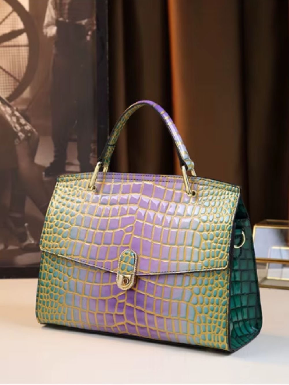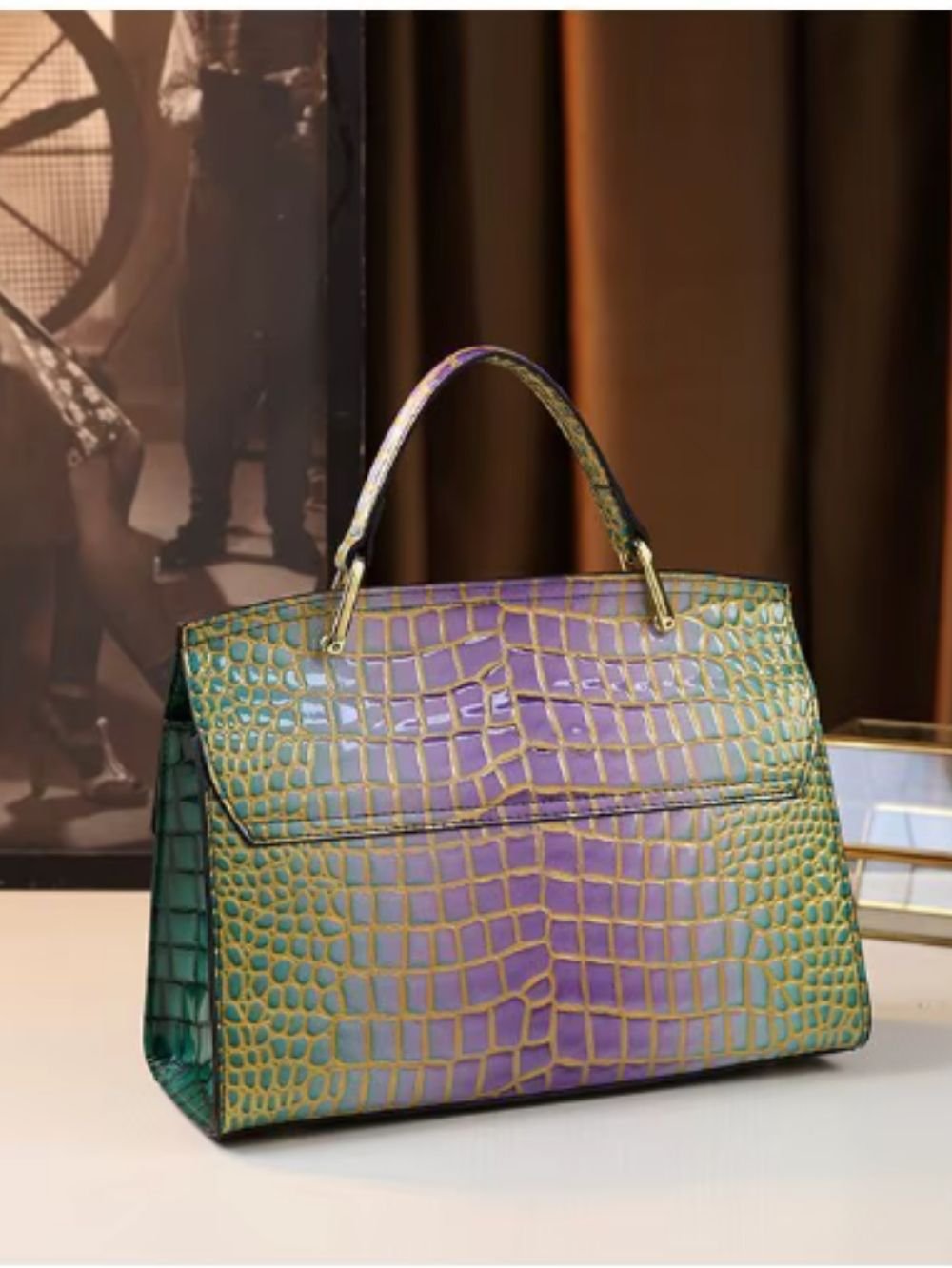 Crafted from high-quality leather, this bag features a glossy crocodile-embossed finish that adds depth, character, and a luxurious appearance. The structured silhouette offers both style and practicality for daily and elevated wear.