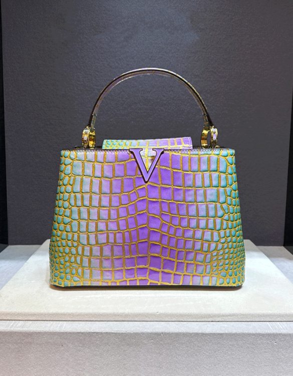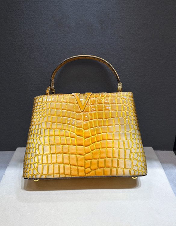 Timsah Derisi Desenli Parlak Gerçek Deri Çanta