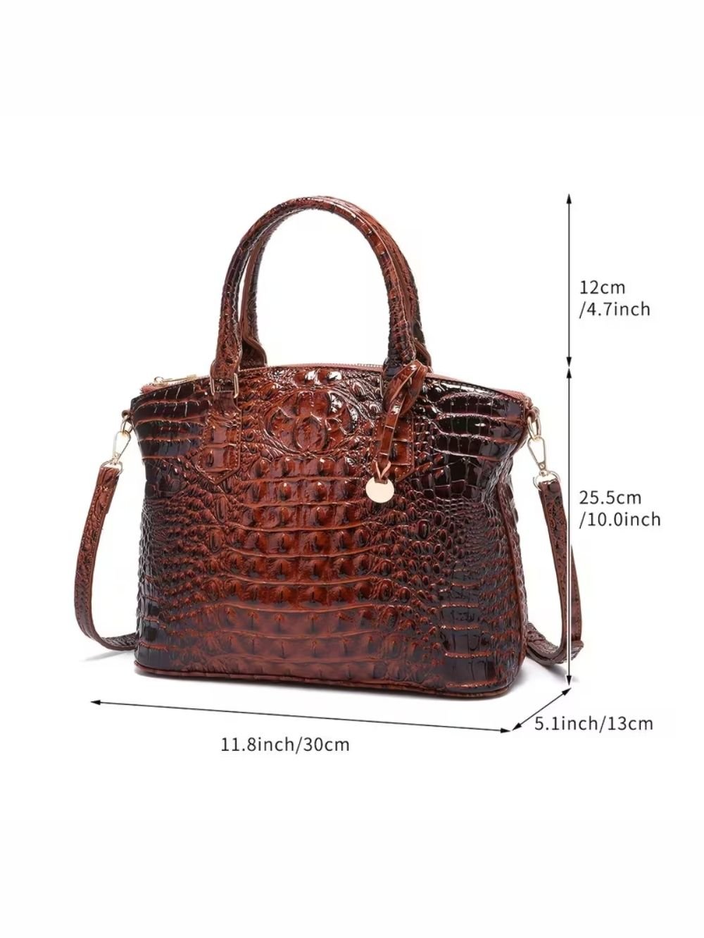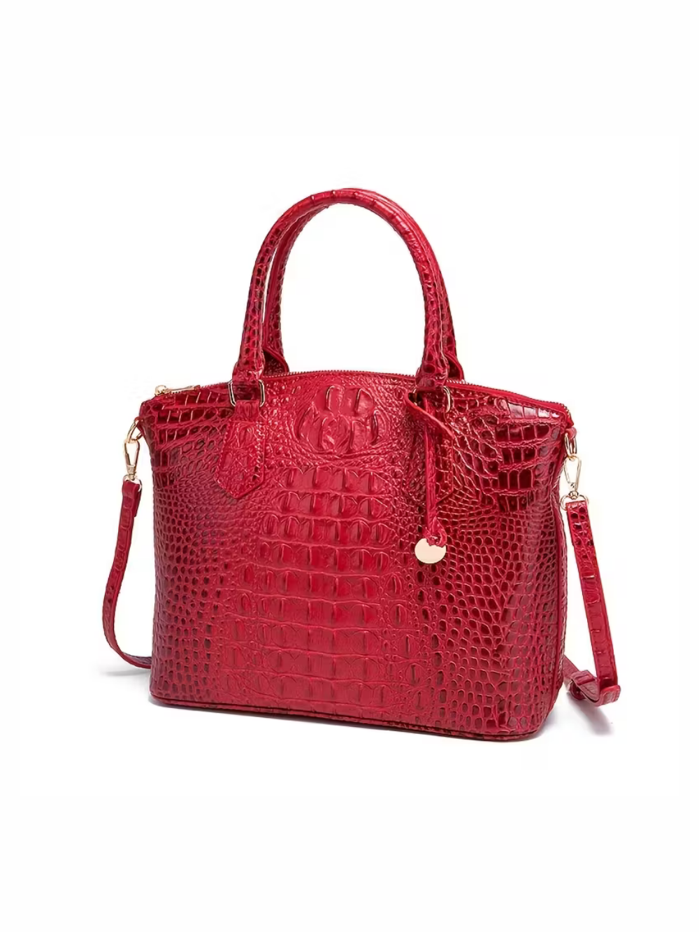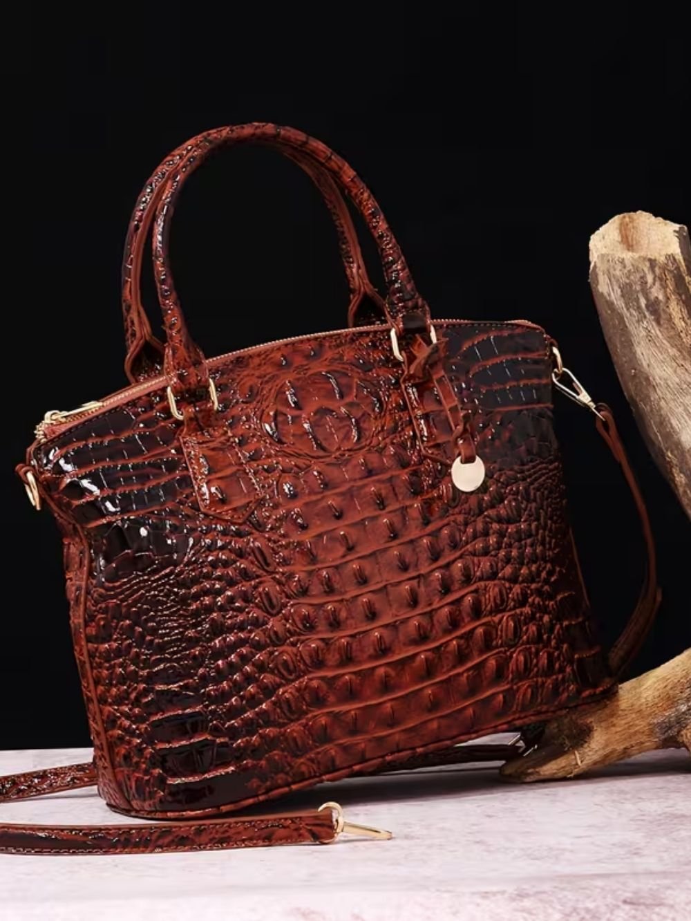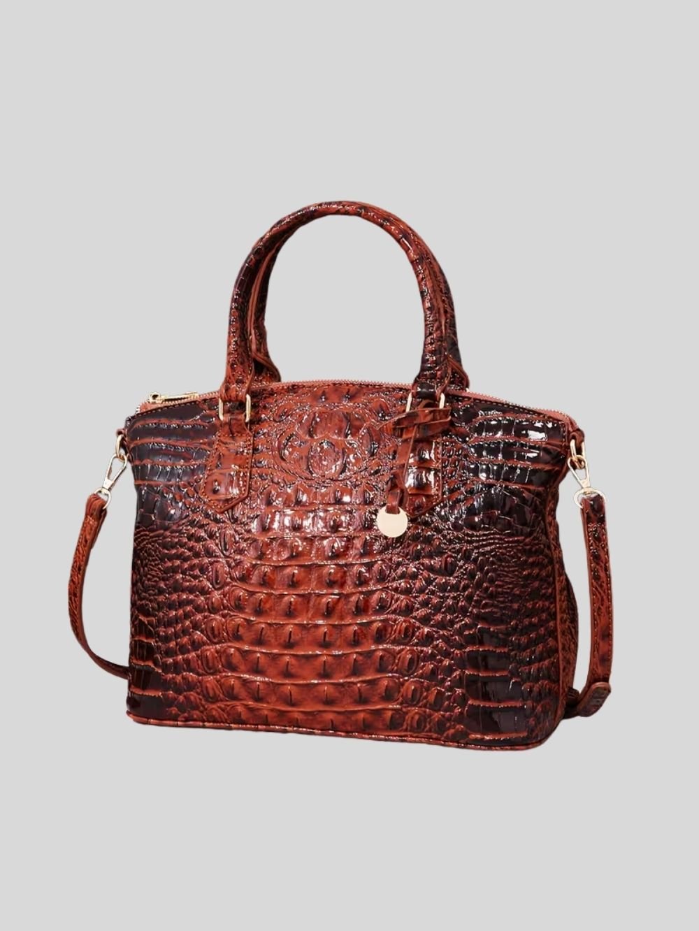 Crafted from high-quality leather, this bag features a shiny crocodile-embossed pattern that adds depth and a luxurious visual finish. The structured silhouette ensures a polished appearance suitable for both day and evening wear.