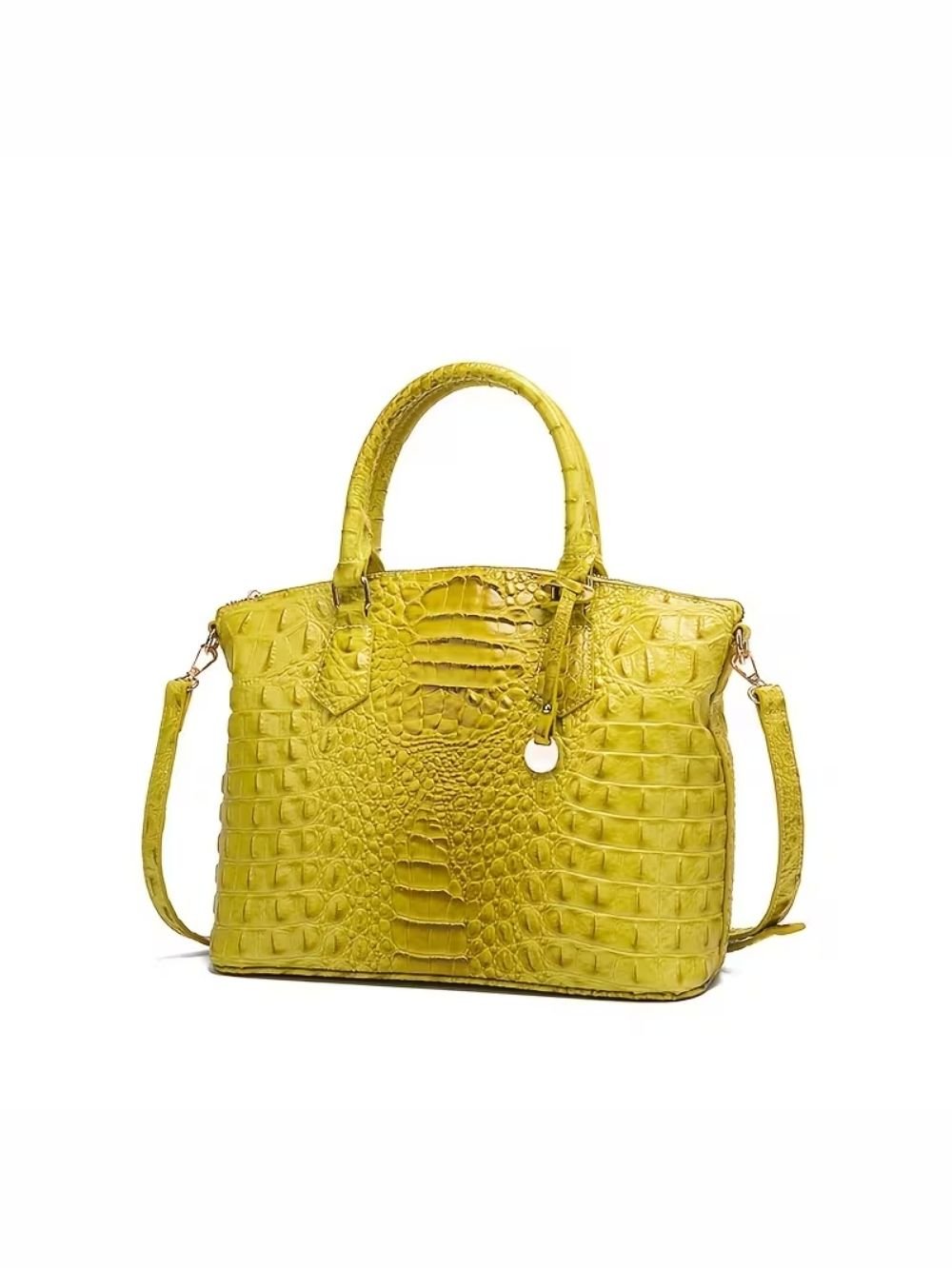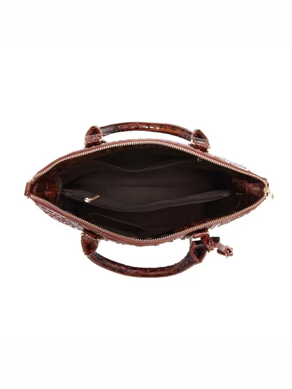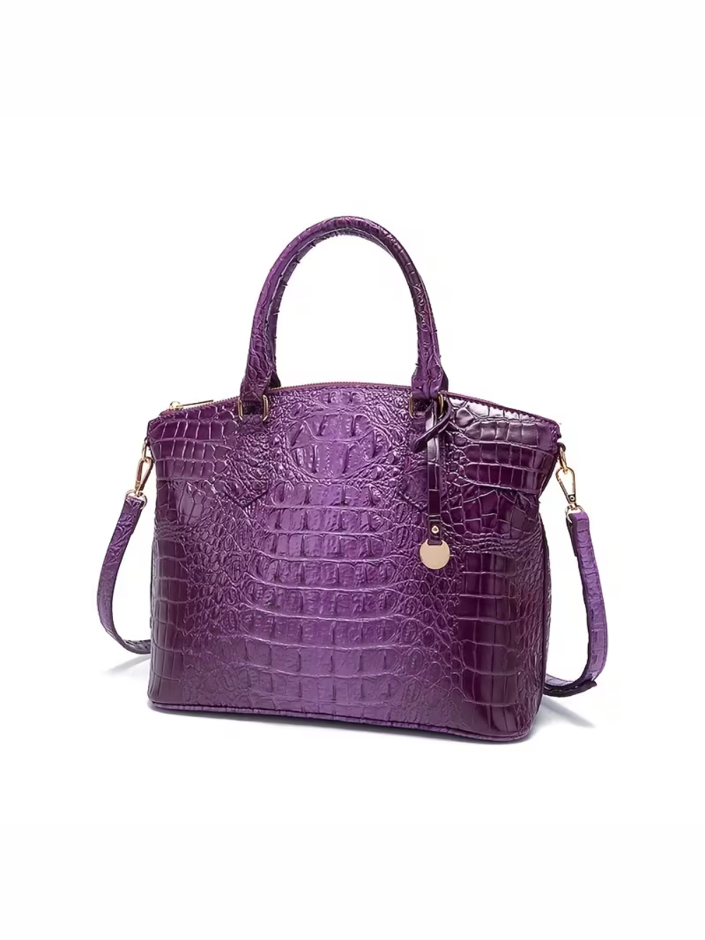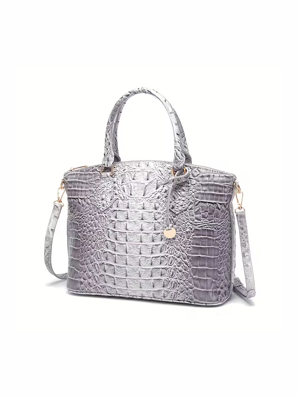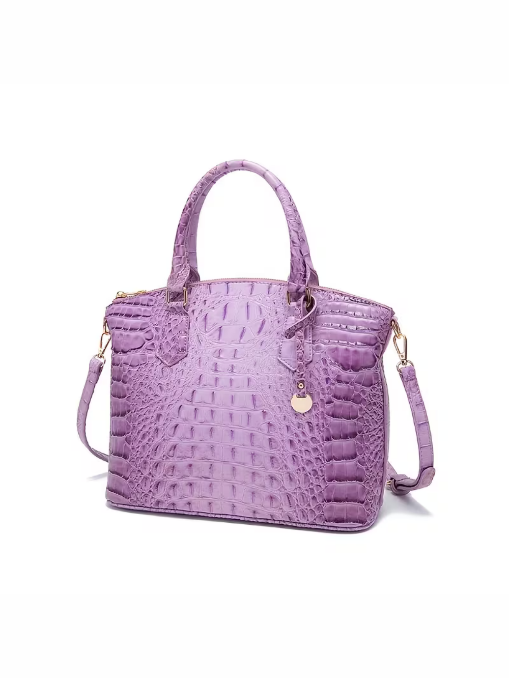 Crafted from high-quality leather, this bag features a shiny crocodile-embossed pattern that adds depth and a luxurious visual finish. The structured silhouette ensures a polished appearance suitable for both day and evening wear.