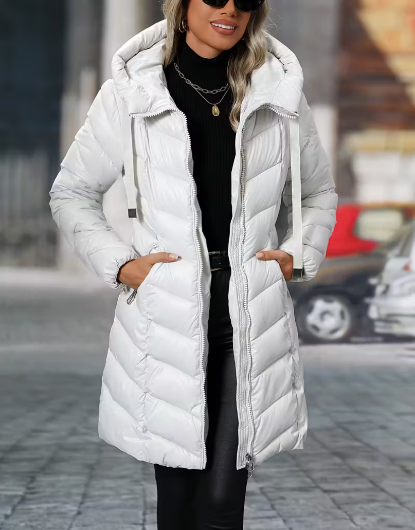 Diz üstü formu ve ısı yalıtımlı yapısıyla Uzun Kapüşonlu Şişme Mont, kışın soğuk günlerinde maksimum koruma ve modern bir stil sunar.