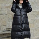 siyah uzun kaz tüyü kürk kapüşonlu parka sk50723