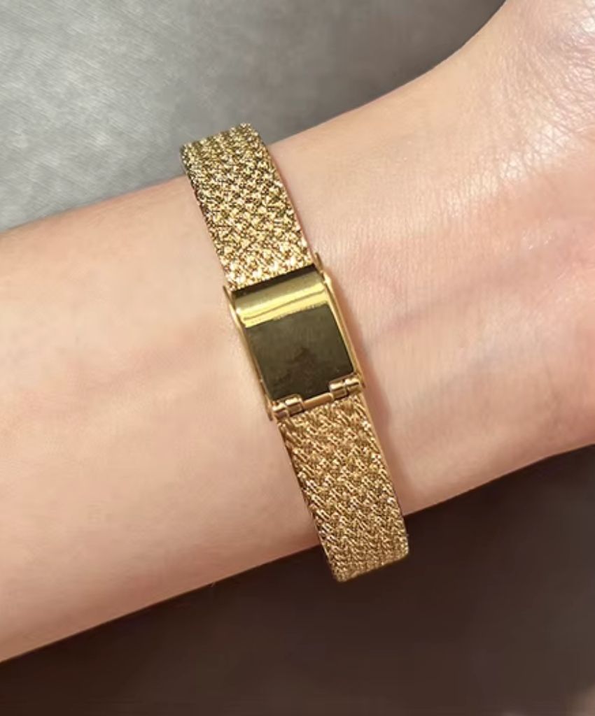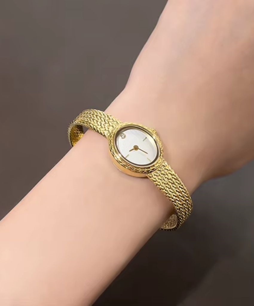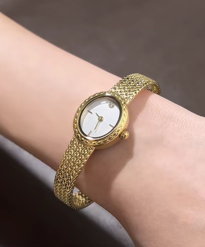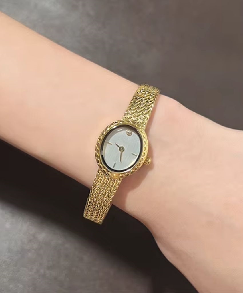 Bu altın kaplama vintage kol saati, zamansız tasarımıyla şıklığınıza değer katar. Her dönemin modasına uyum sağlayan sade zarafetiyle, stil sahibi kadınların favori aksesuarı olmaya aday.