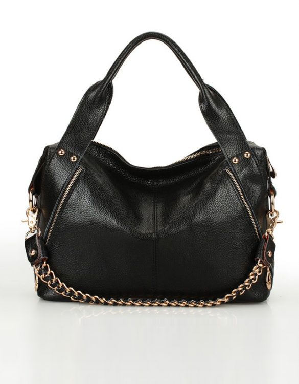 Hakiki deri ve Pvc malzemeden üretilmiştir. 26x22x13 cm boyutlarına sahiptir. Alt çevresi zımbalıdır. Leopar desenli iç çantaya sahiptir. Deri omuz askılıdır. Siyah, Turuncu, Pembe, Fuşya ve Fıstık Yeşili renk seçenekleri ile sipariş verebilirsiniz.