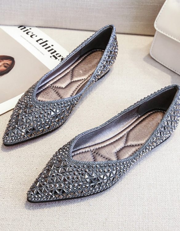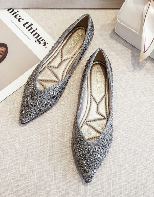 Boncuk Taş İşlemeli Düz Taban Babet SK53184